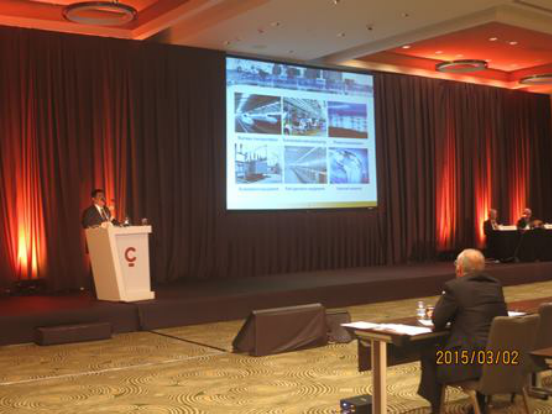 From 1th to 5th March 2015, our general manager Mr. Fan Zhixin was invited to attend 2015 technical seminar of IWCC, which was held in Istanbul, Turkey. On the conference, on behalf of our company and Enterprises-Universities-Researches cooperation organization, general manager made a speech with topic “Continuous Extrusion technology for copper”. In the speech our general manager reviewed the continuous extrusion technology and its application and development in copper industry, and was focusing on the newest research achievements of continuous extrusion technology for copper alloy. The speech of our general manager aroused deep interest in the representatives present at the meeting, and was well-received by organizing committee, technical experts and international enterprises’ representatives.